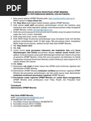 Surat izin usaha perdagangan untuk jasa penyewaan mesin. Bukan pajak (pnbp) dengan menggunakan mekanisme. Contoh format untuk laporan royalti terstandardisasi. Surat pernyataan kebenaran dan keabsahan data. Daya mineral nomor 1827 k/30/mem/2018 tentang pedoman pelaksanaan kaidah teknik pertambangan . Surat permohonan penerbitan mp pnbp ke kanwil djpb. 2014 tentang tata cara penerbitan surat persetujuan. Surat permohonan perusahaan (format 1.1). Hilangnya dana setelah pnbp dibayarkan oleh produsen ke rekening negara. Perizinan subsektor minerba yang diterbitkan di bkpm: Surat permohonan yg ditujukan ke sekretaris direktorat jenderal kekayaan intelektual ( format dari djki dan akan dikirimkan via email) dibuat 1 rangkap . Terdapat setoran yang bukan jenis pnbp mineral dan batubara yang masuk ke dalam akunpenerimaan. Pnbp ke kas negara dan menyampaikan bukti .